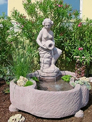 Imagínate esta escena: en tu romántico jardín se oye un chapuzón de agua. Los manantiales que brotan de esculturas elegantes, las fuentes que burbujean en barriles de madera y el estanque que brilla en los rayos del sol intensifican que tengas un gran y buen estado de ánimo. Si esta es tu versión mental de un buen jardín, entonces sin lugar a dudas eres un jardinero o jardinera con el alma de una persona romántica que seguro que apreciará la elegancia que le da a un jardín tener una fuente de agua con forma humana. Por ejemplo una elegante cascada de ánfora de arcilla, con agua que fluye de la maceta a la jarra. O un pequeño riego hecho en una maceta u otro recipiente de cerámica de la más alta calidad, resistente incluso a las heladas duras y hermosamente envejecido.