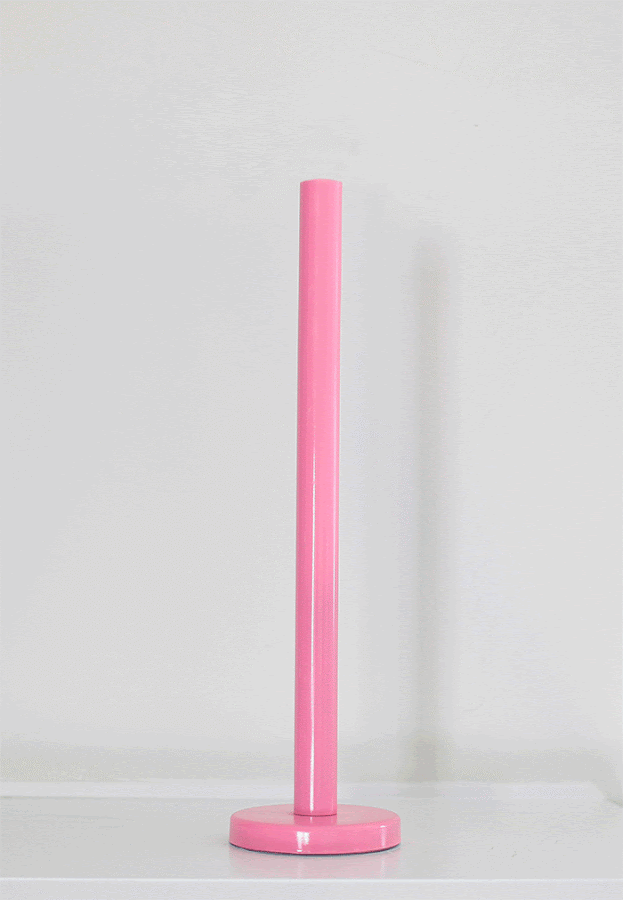 Con pintura en spray, rociaremos el portarrollos y lo dejaremos secar. Nosotros hemos elegido pintura rosa...esta muy de moda.
