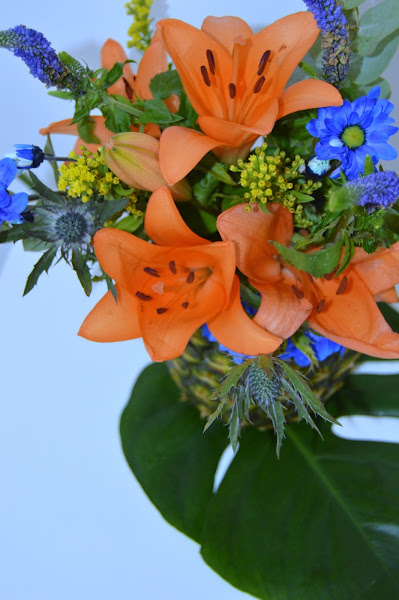 Con el recipiente preparado, toca elegir las flores; para que el resultado sea realmente tropical elige colores fuertes y llamativos como el naranja, morado, azul?.