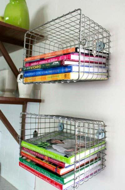 2. Cuelga cestas en las paredes y coloca tus libros de receta
