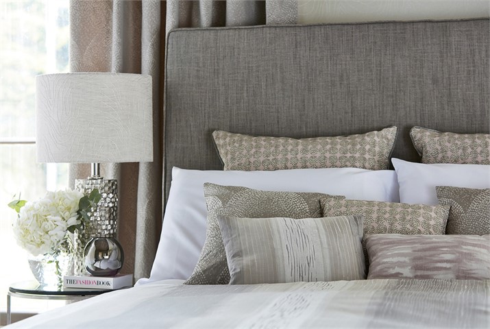En las camas, si van colocadas a la pared sólo por el lado del cabecero con el almohadón, un cojín delante (cuadrado o más pequeño) y el delantero si tiene una forma original, la composición nos quedará con más volumen, aportará dinamismo y un toque original a la cama.