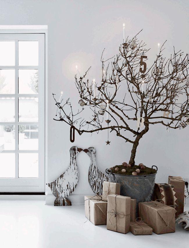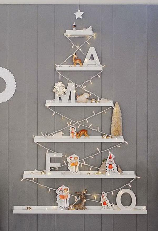¿Qué tal reciclar unos cuantos listones de madera para diseñar tu propio árbol? Cortados con diferentes longitudes como si fueran ramas y clavados en una pared vacía puede quedar fantástico. Para que sea más luminoso y tenga un aire escandinavo, atrévete a darle una manos de pintura blanca o marfil. Ya está casi listo. Sólo faltan algunos detalles para vestirlo. Quizá tengamos a mano conchas y piedras recogidas este verano en la playa. Pueden transformarse en adornos navideños muy especiales, puestos en hilera sobre los listones. Junto a ellos, unos objetos de madera más grandes para dar más volumen. Y por último, la iluminación artificial. No renuncies a ella si quieres que que el árbol pueda lucirse al máximo durante la noche. A mi me encantan las guirnaldas de luces LED. Son puntos de luz con algo de magia.