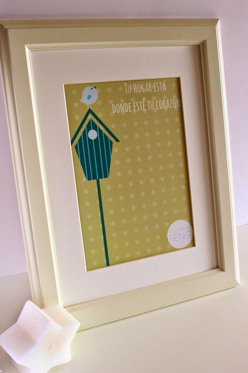Es una frase que siempre me ha gustado, quizás porque llevo unas cuántas mudanzas... pero es cierto, tu hogar está donde esté tu corazón... Una lámina bonita que puedes colocar en cualquier espacio de tu hogar, aunque a mi me encanta tenerla en el recibidor.