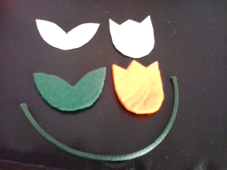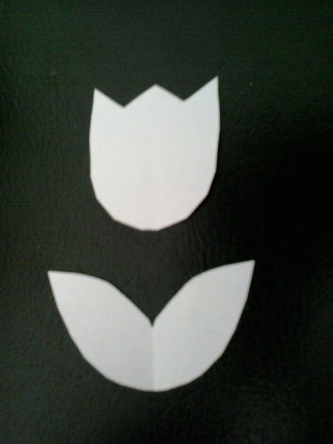 En un folio, dibujamos la dos partes del tulipán y las recortamos. Si no tenemos mucha maña, podemos imprimir alguna imagen de internet, aunque esta figura es muy sencilla y no creo que tengáis ningún problema.