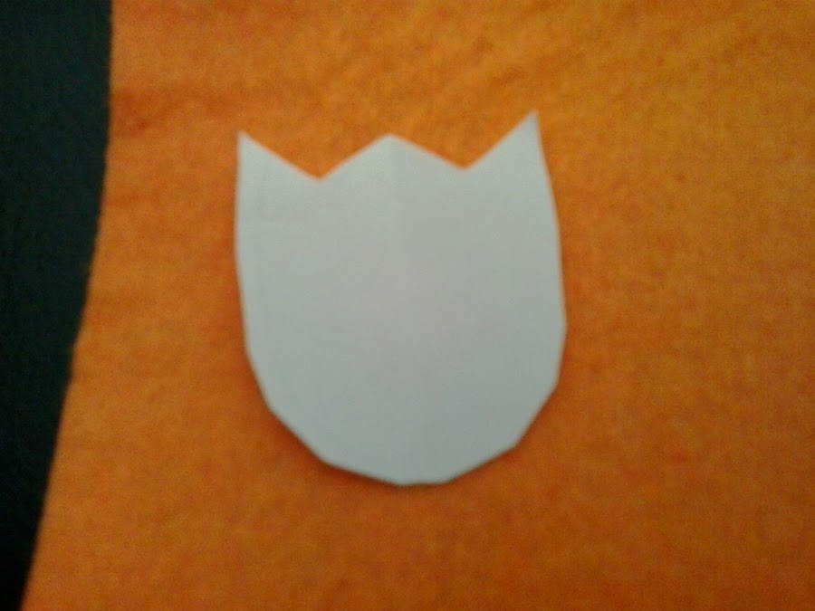 Para realizar el tulipán, o cualquier otra pieza de fieltro, lo mejor es cortar un patrón primero en papel. Así todas las piezas que vamos a cortar, tendrán la misma forma y tamaño.
