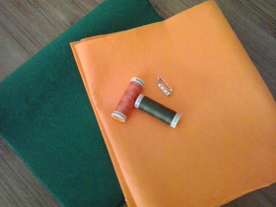 Tela de fieltro de los colores y grosor elegidos. En mi caso, he usado fieltro fino (ya que la tela se pone doble) en color naranja y verde.
