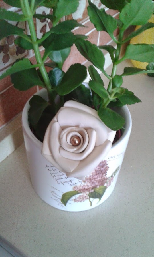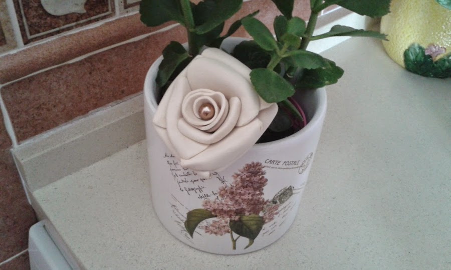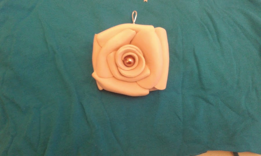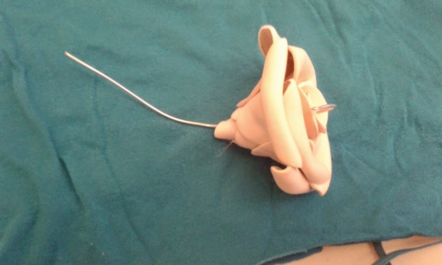 6 Colocamos un alambre por el centro de la flor y pegamos una perlita