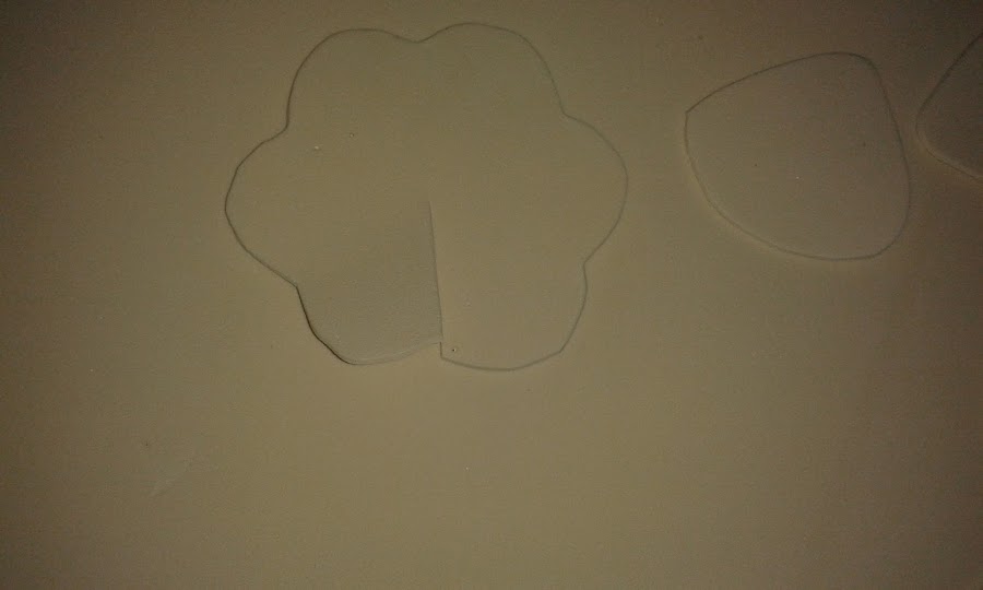 2 recortar goma eva y hacer el pequeño corte que marca la plantilla en el pétalo central.