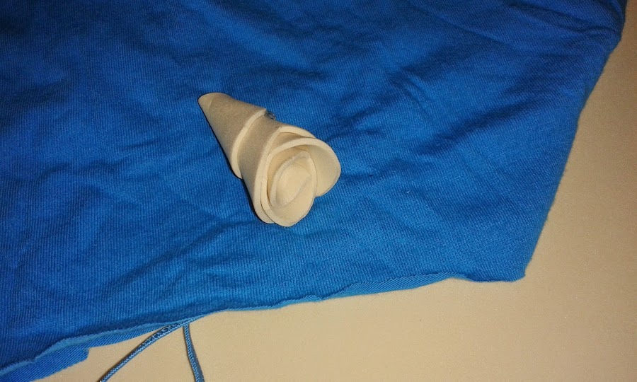3 Doblar el pétalo sobre si mismo a partir del corte que hemos realizado y pegar con silicona.