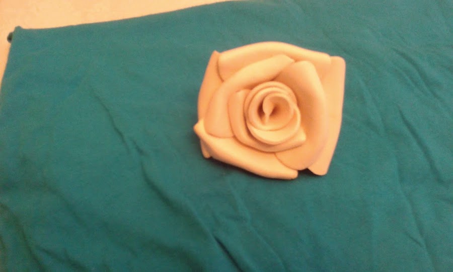 5 Aplicar silicona en el centro de los pétalos y ir pegando al pétalo central para ir formando la rosa