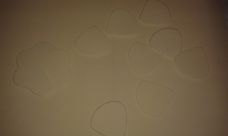 1.Pasamos las plantillas a de la flor y pétalos a la goma eva con un lápiz o porta mina.