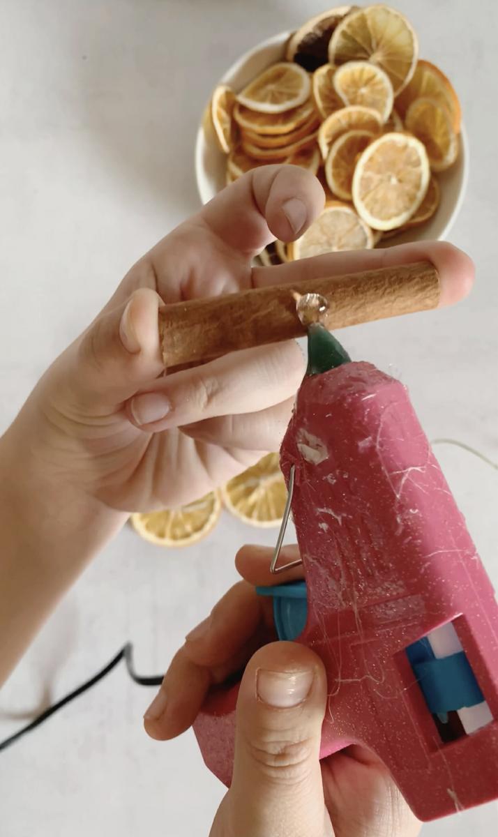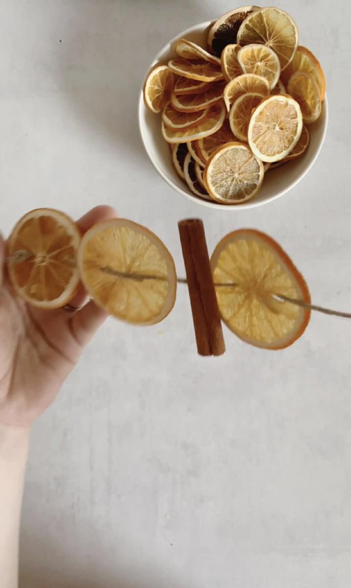 Como veis el paso a paso es muy sencillo, únicamente vamos enfilando los distintos materiales con la aguja lanera y un cordel rústico. Las ramas de canela podemos anudarlas o darles un toque con la pistola de silicona. Podemos hacerlas solo de naranjas o también añadir, pomelo, limón, mandarina… En el tutorial que os he compartido más arriba podéis ver lo bonitas que quedan deshidratadas.