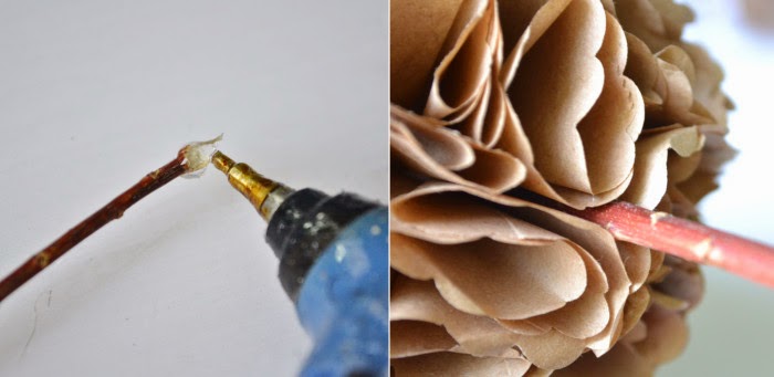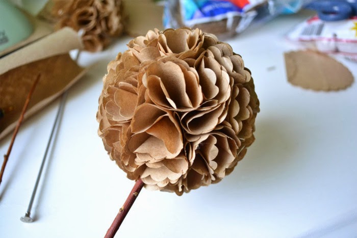 Ha que continuar haciendo lo mismo hasta que no se vea nada de la bolita ¡ya lo tenemos! Solo nos falta pegar la ramita que hará de tallo de la flor...