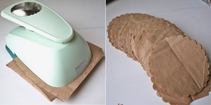 En primer lugar, tenemos que empezar a recortar el papel con la perforadora.¡Un montón de ellos porque ya veréis todos los que se usarán!