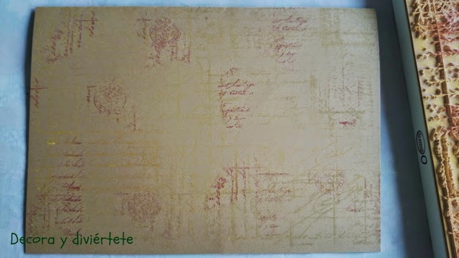 Primero tenéis que doblar la cartulina por la mitad , una vez doblada , estamparla con el sello que hayáis escogido . Si queréis una guía , yo le puse dos colores de tinta ( el ocre y el rojo ) para dar un poco mas de vida a la tarjeta .