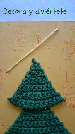 Y para hacer la última parte del árbol hice 12 cadenetas e hice pasadas hasta acabar en punta y completar el triángulo