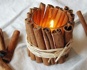 Para hacer un portavelas original y a la vez nos sirve de ambientador, ya que con los palitos de canela y el calor obtendremos ese aroma a canela por todo el rincón.