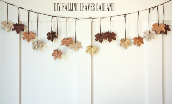 Puro amor cuando la vi, nunca pensé que un poco de purpurina podría sacar tanto encanto de las hojas, además de ser una excelente idea para decorar cualquier rincón de casa: en una chimenea, escaleras o por encima de una puerta.
