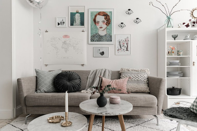 Las plantas, las láminas de la pared del sofá, los detalles de la cocina... Todo aporta una consonancia al espacio y nos hace despedir la semana con una sonrisa. ¡Qué casa tan bonita!