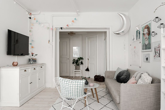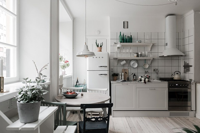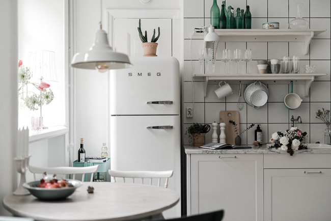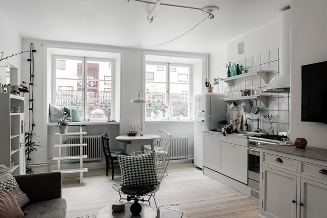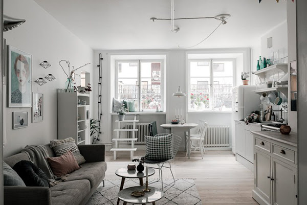 Cerramos semana con un apartamento pequeño, de un solo dormitorio, pero con un encanto... Reconozco que el flechazo surgió con la nevera y la cocina. Una mezcla perfecta de estilo clásico, nórdico y elegancia francesa.