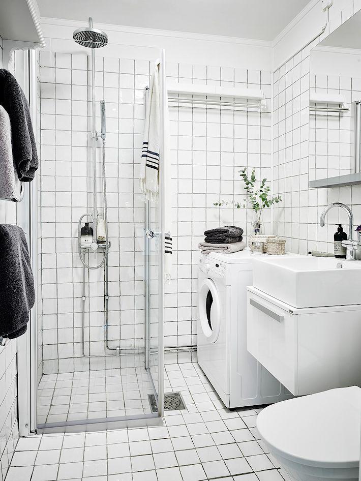 Es muy común en baños de estilo nórdico que las paredes y el suelo compartan un mismo azulejo normalmente en color blanco… y en éste así ha sido.. Destacamos el baño por su chapado blanco en paredes y suelo y las tuberías que han dejado a la vista dando un aire envejecido que nada tiene que ver con el resto de la casa.