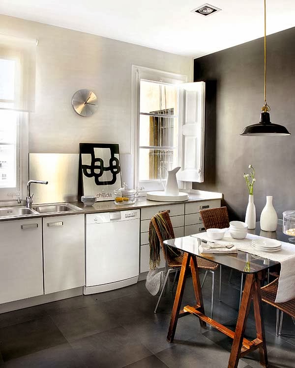 En toda la vivienda se busca el equilibrio, por lo que predomina una paleta de color gris piedra en los paramentos verticales, en suave contraste con el blanco y el negro.