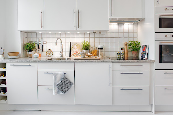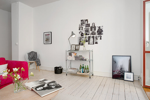 Techos altos, grandes ventanales, la encimera de granito, los suelos de madera...y esos toques fucsias, ese sofá que destaca sobre un bien aprovechado salón.
