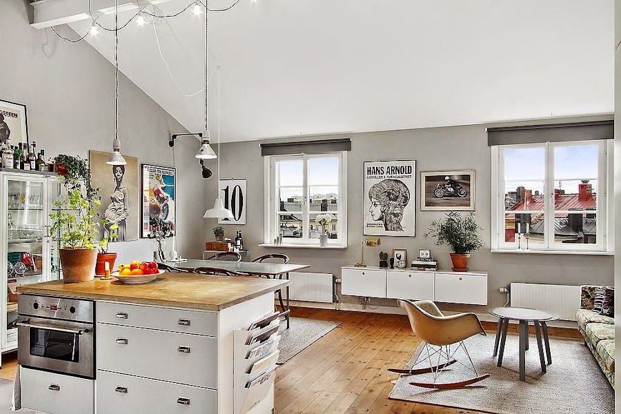 Su arquitectura ya le regala un sentido industrial con los techos altos en los que las instalaciones se dejan ver. Si a esto le añadimos el concepto de espacio abierto tan bien delimitado en el que los muebles lo van marcando todo y el conjunto de buenas ideas marcadas por las tendencias, pues simplemente lo convierten en un perfecto caramelito.