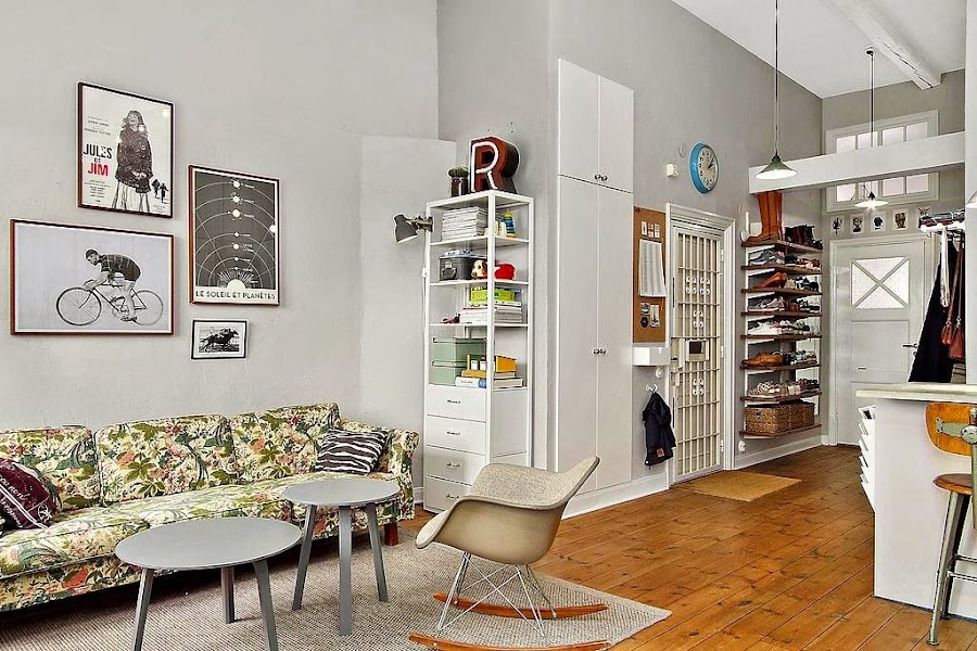 Es informal pero a la vez no pierde la elgancia y está todo tan bien definido que se respira armonía aunque cada rincón haya sido aprovechado decorativa y funcionalmente. Una mezcla fresca y a la vez muy llamativa que consigue realzar este pequeño apartamento en Estocolmo.