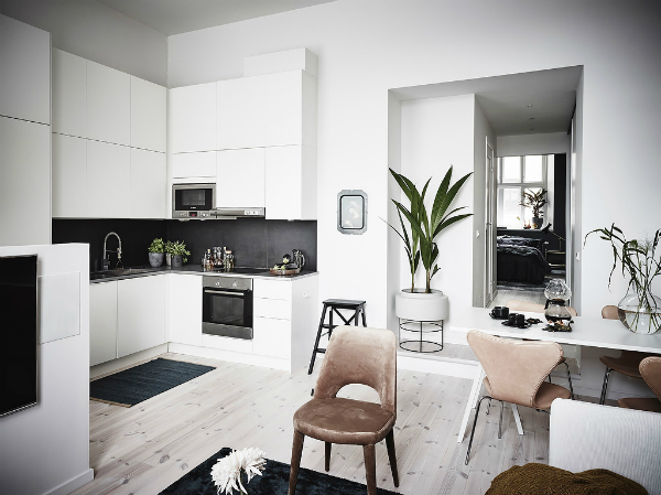 Muchos me habéis pedido que os muestre inspiraciones para viviendas pequeñas o apartamentos normales. La vivienda que os muestro es un apartamento con una habitación en la que la cocina se encuentra abierta al salón y al espacio de trabajo en una línea continua y comunicada. Toda la decoración sigue una unidad de colores claros y materiales (algo imprescindible para conseguir sensación de amplitud ...