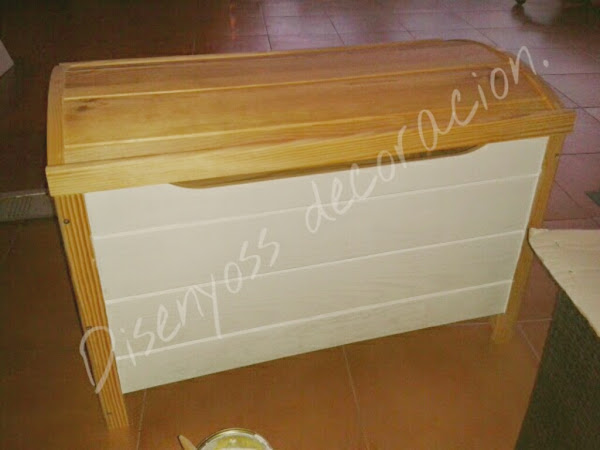 El arcón era de madera natural que después de varias manos de pintura y otras tantas de lija lucia un blanco beteado ideal.