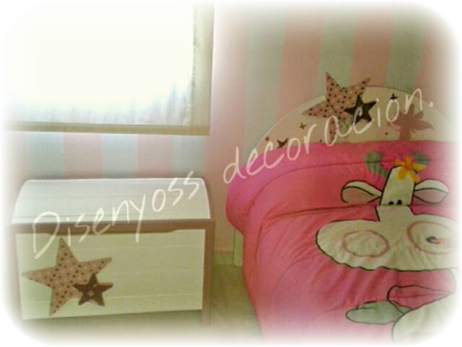 La cama tenía dos estrellas en el cabecero y otras tantas en los pies, estas últimas iban a ser tapadas con un mueble así que decidimos aprovechar para personalizar el arcón que no me dirán que no parece original.
