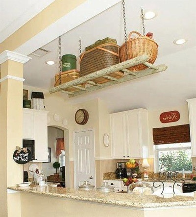 A que queda muy bien y es de estilo desenfadado. AHHHH !!!! se me olvidaba las escaleras colgadas del techo las puedes poner hasta en la cocina para guardar cestos o cosas que no utilices normalmente, no te lo crees ..... pues mira esta foto :