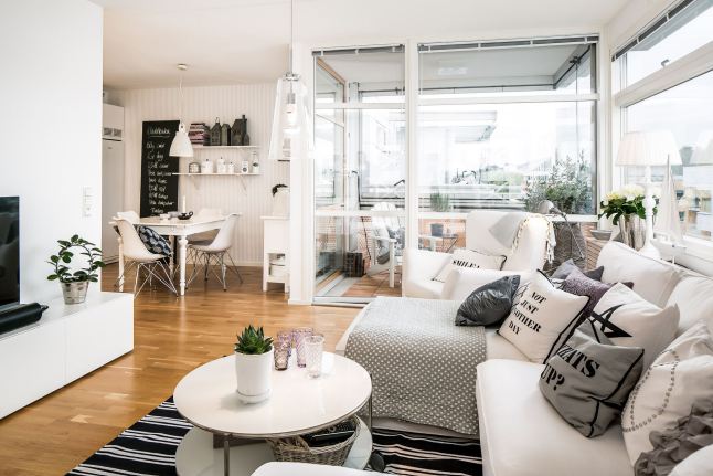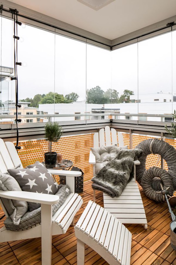 De este piso me ha gustado todo ... menos el sofá blanco de tela que aunque es precioso me parece muy poco práctico, por lo demás no le pongo ni una pega, ideal para coger ideas para decorar en blanco y negro o amantes del estilo nórdico, mientras yo me quedo en esta terraza tan tan apañada