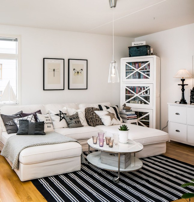 El piso de hoy principalmente en blanco y negro tiene detalles que hacía mucho que no veía, un fondo blanco lleno de luz y una mezcla de estilos entre el nórdico más clásico y el más moderno, fusión de estilos bien coordinados que crea un ambiente cálido, acogedor y si os fijáis lleno de estrellas por todas partes.