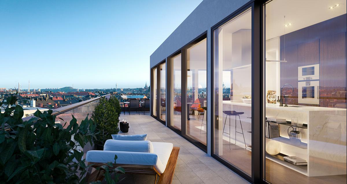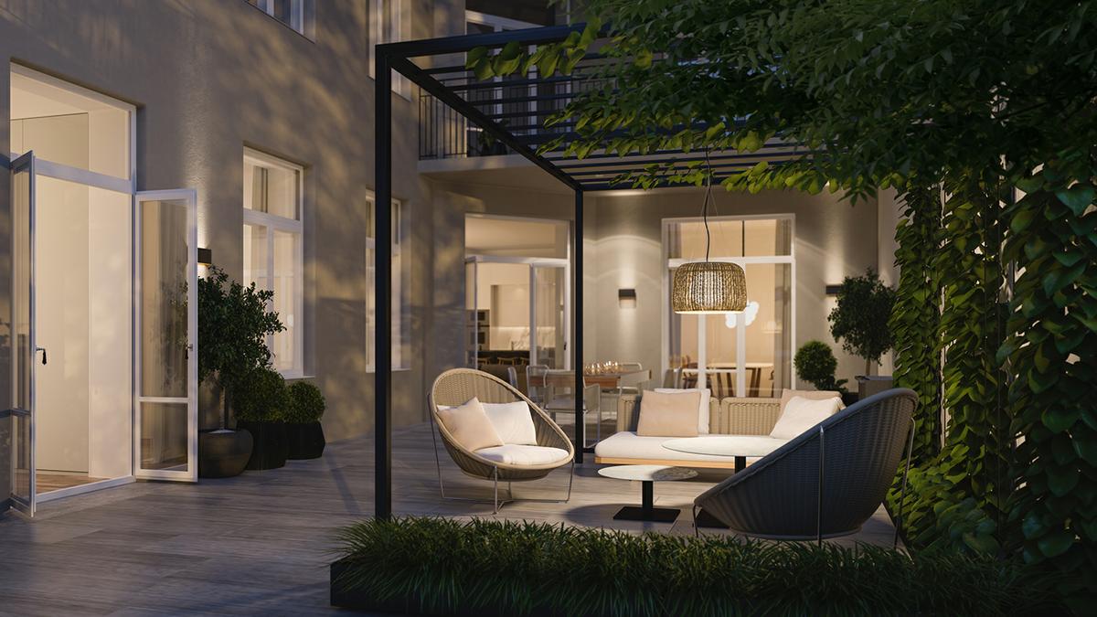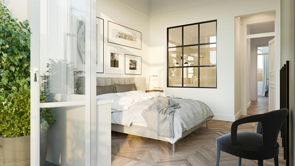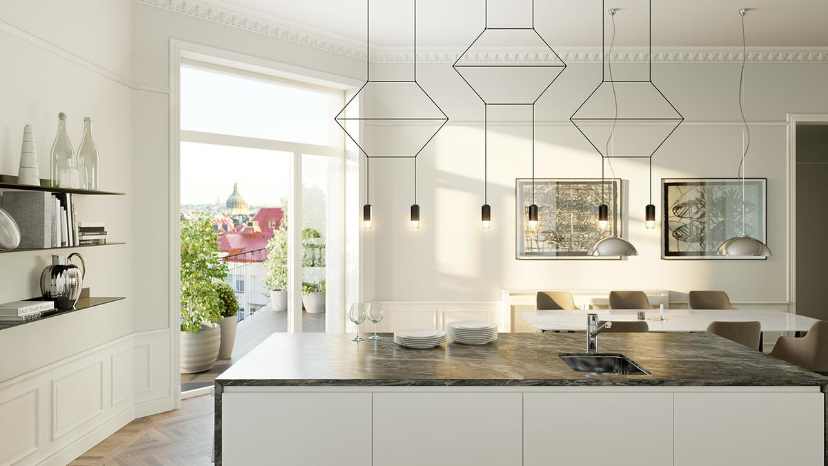 La paleta de colores parte de un estudio de elegancia escandinava que combina grises suaves y blancos, contra una variedad de matices en madera, acabados de piedra natural y reflejos negros dramáticos. Vislumbres de vegetación desde los balcones, los jardines del patio y el parque que brindan una inyección de frescura.