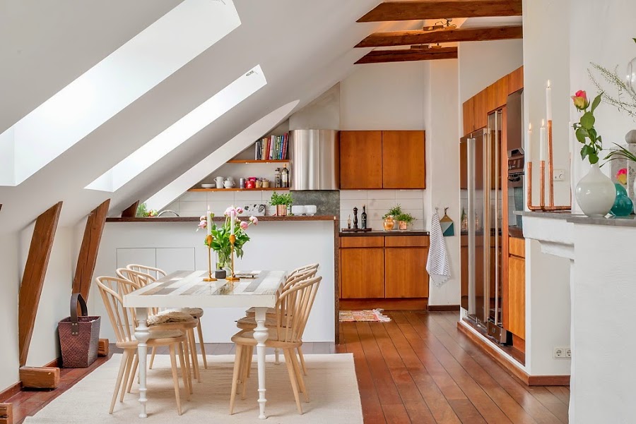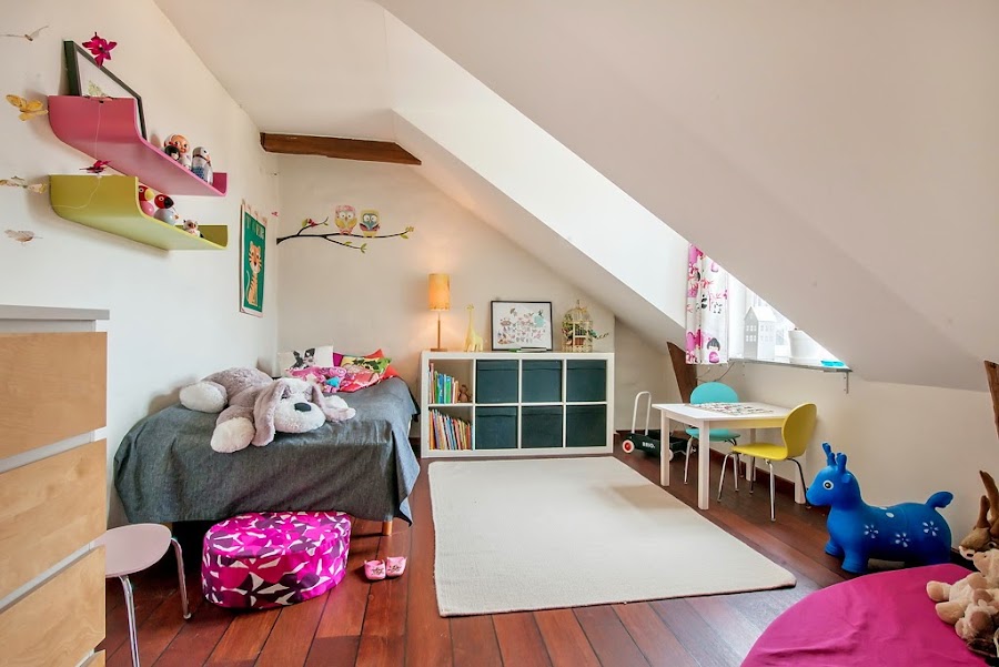Alfombras, cojines, mantanas, fundas nórdicas y pladis, da igual si es liso o estampado, colores alegres, pastel o una mezcla de ambos, todo va a quedar bien porque tenemos un lienzo en blanco para decorar, no ha podido gustarme mas este ático, armonía, alegría y una sensación de creatividad inunda cada uno de sus rincones.