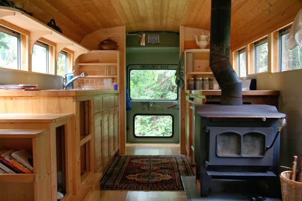 ¿Quien diría que en el interior de este autobús escolar americano hay una vivienda?