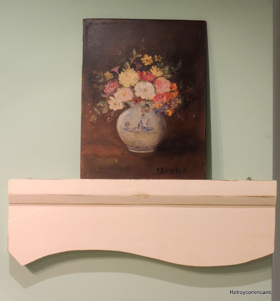 Comentar que, a pesar de la gran ventana que tiene, la luz natural es casi nula, por lo que hemos tenido que hacer las fotos con luz artificial. Este mueble de aquí abajo fue hecho a medida para aprovechar el hueco disponible y sus puertas nos están pidiendo a gritos, desde el primer día, "un algo" que las anime. A ver cuando encontramos un huequito...