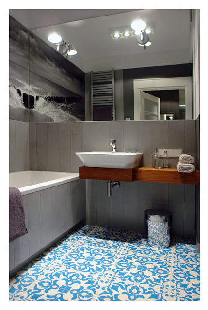 tambien, lo encuentro una solución perfecta para camuflar humedades en baños antiguos donde el alicatado solo llega hasta media altura o simplemente no existe , colocando un mural o espejos a lo largo de la pared conseguiremos un baño diferente