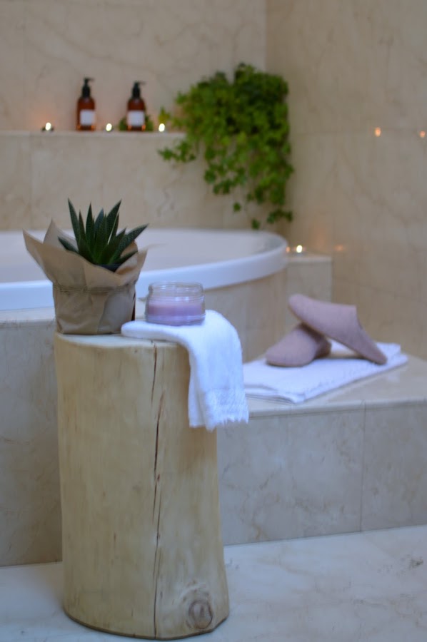 Creo que lo que más puede llamarte la atención, aparte del mármol beige que me encanta, es la bañera... es enorme y os confieso, que le saco muchísimo partido.