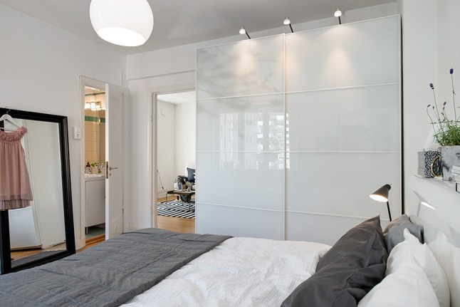 El espejo, además de ser muy práctico cerca del armario, ayuda a hacer que el espacio parezca mayor y potencia la luz natural que entre por la gran ventana.
