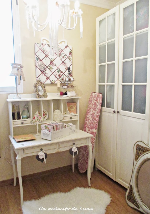 Sencillamente lo pinté de blanco hielo mate y utilicé unas plantillas....