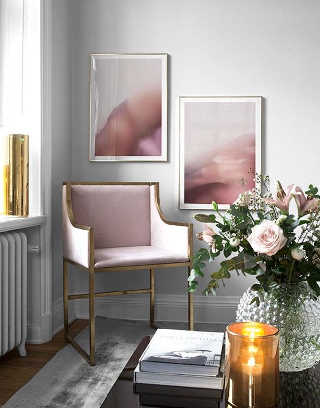 Esto es otra necesidad, pero sin prisas. Después de pintar mi baño se quedó el hueco vacío donde tenía un cuadro botánico que me ha acompañado durante muchos años. Quiero poner algo sencillo y sin gastar demasiado en esa pared, así que probablemente compraré una lámina enmarcada en Desenio, no serán las de la imagen pero sí con esta paleta de color, la misma que he utilizado yo. El rosa empolvado le dará un toque romántico al blanco y gris del baño.