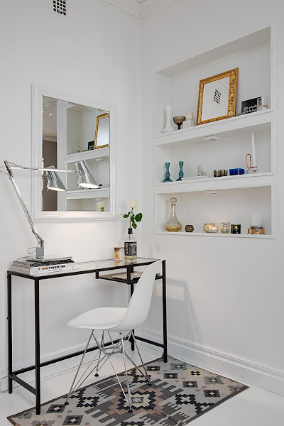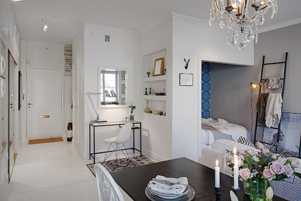 Una decoración sencilla y con encanto, con los muebles justos y necesarios (casi todos de Ikea) y sobre todo, del tamaño correcto para el espacio donde se ubican. Los textiles, la iluminación y las flores frescas, consiguen darle un toque femenino y acogedor.