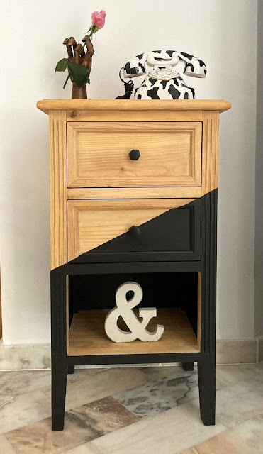 Ayer mismo, a última hora de la tarde, llevamos la mesita a casa de Marga, donde ya luce en todo su esplendor.