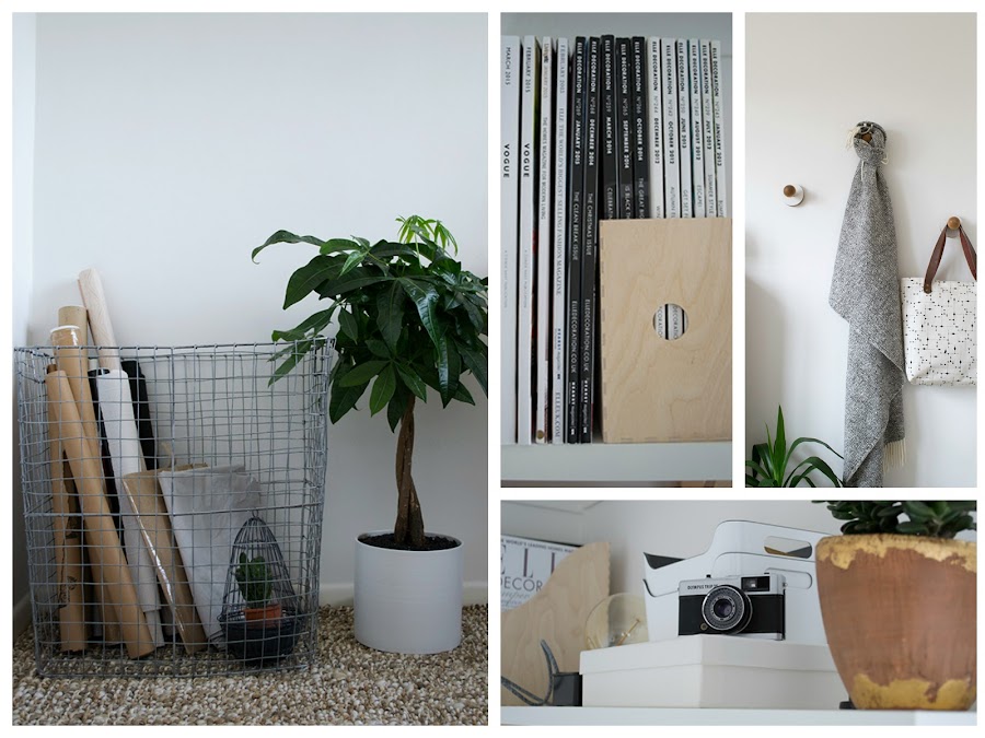 El almacenaje. ¿Cómo conseguir que todos los materiales, libros y herramientas estén localizados y, al mismo tiempo, no rompan la estética de la habitación? Pues almacenándolos en elementos acordes con el espacio como cajas blancas, archivadores de madera, una cesta metálica que es pura ligereza, o el juego de percheros de bolas que, de nuevo, mezclan los tonos madera y blanco.