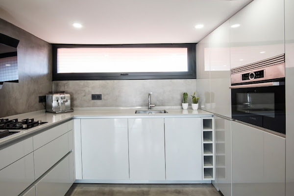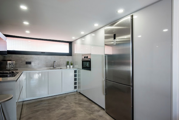 Es frecuente ver en las cocinas actuales, paredes libres de muebles o como mucho, la campana extractora. Esto ayuda a tener un ambiente menos cargado visualmente y más agradable, sin necesidad de convertirla en un sitio abarrotado de módulos.