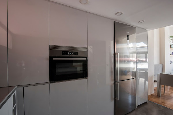 Un modo práctico de hacerlo es ubicar los muebles de columna en una de las paredes, agrupando los hornos y frigorífico junto con las despensas, que son el lugar ideal para guardar todos los alimentos necesarios para la familia.