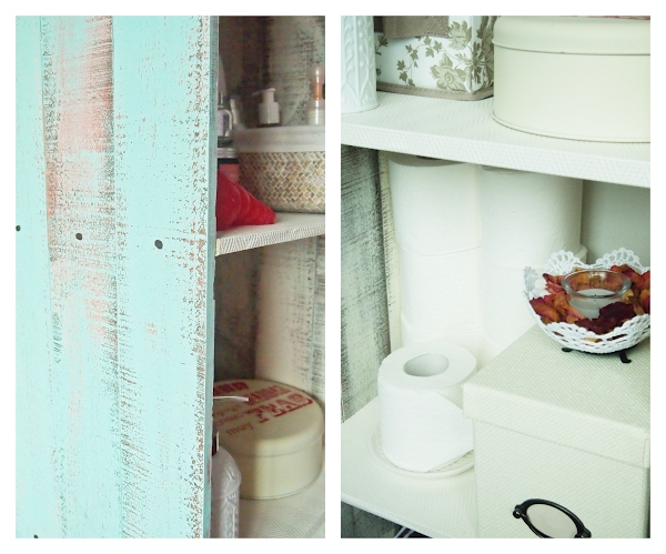 ¿De dónde saco yo estas cosas? De la necesidad, os contaré que en casa tengo dos baños, el de la ducha y el aseo-trastero que llamo yo, es ese lugar en el cual se acumulan las cosas que uno no sabe qué hacer con ellas, principalmente y en mi caso porque no tengo un sitio para dejar todas mis pinturas y cosas a medio hacer o para que José deje la bolsa de gym. Por lo que cuando algo llega a casa y no tiene un lugar asignado, termina en el baño.